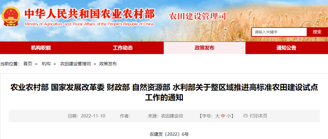 為深入貫徹黨中央、國務院有關部署要求,落實中央一號文件精神,依據《國務院辦公廳關于切實加強高標準農田建設 提升國家糧食安全保障能力的意見》(國辦發〔2019〕50號)、《全國高標準農田建設規劃(2021—2030年)》,農業農村部、國家發展改革委、財政部、自然資源部和水利部決定在有條件的地區試點整區域推進高標準農田建設工作。現將有關事項通知如下。