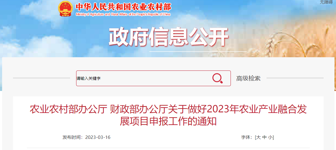 (三)按時報送材料。各省份應于2023年3月27日前報送農業產業融合發展項目申報材料(分別報農業農村部計劃財務司、財政部農業農村司各1套,農業農村部發展規劃司、鄉村產業發展司各2套,并附電子文檔光盤),超期不予受理。項目實施方案原則上應由各省份農業農村、財政部門結合實際、深入研究、自主編制。
