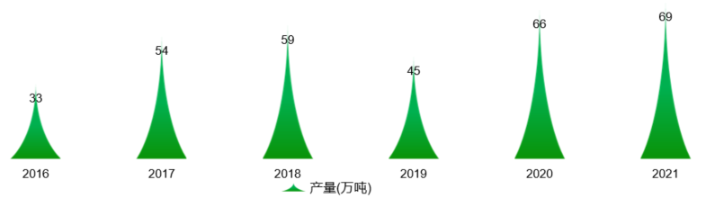 受加工原料、生產(chǎn)技術(shù)、環(huán)保治理、生產(chǎn)成本等諸多因素的影響,近幾年中國馬鈴薯淀粉產(chǎn)量保持在40-70萬噸。2020年中國馬鈴薯淀粉產(chǎn)量為66萬噸,比2019年增加45.39%。計(jì)2021年馬鈴薯淀粉產(chǎn)量將達(dá)69萬噸。
