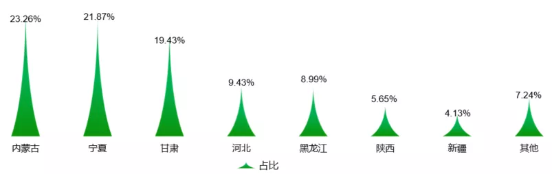 中國馬鈴薯種植和加工主要集中在西北、東北、華北及西南地區(qū),覆蓋15個(gè)主產(chǎn)省區(qū)的6000多萬薯農(nóng)。2020年內(nèi)蒙古、寧夏、甘肅和河北馬鈴薯淀粉產(chǎn)量分別為15.39萬噸、14.47萬噸、12.85萬噸和6.24萬噸,分別占全國總產(chǎn)量的23.26%、21.87%、19.43%和9.43%,上述4省的馬鈴薯淀粉合計(jì)產(chǎn)量達(dá)到48.94萬噸,占全國總量的73.99%。