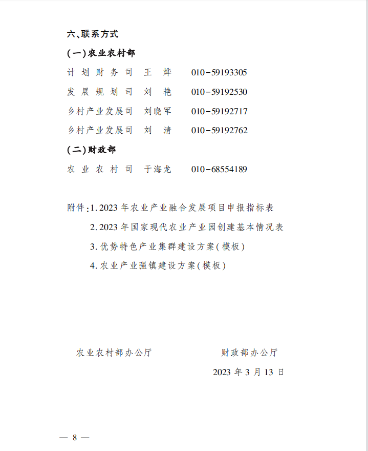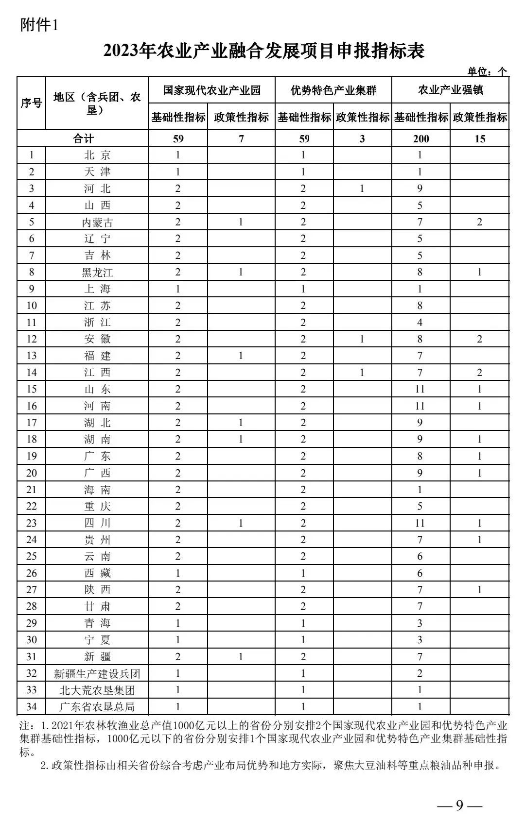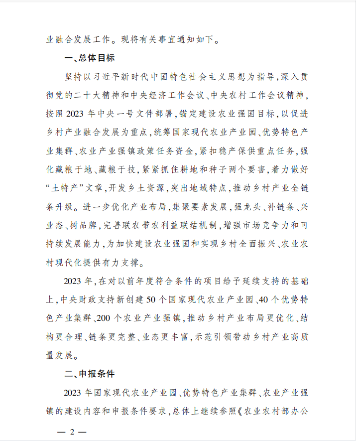 2023年農業產業融合發展項目開始申報,50個國家現代農業產業園;40個優勢特色產業集群;200個農業產業強鎮。