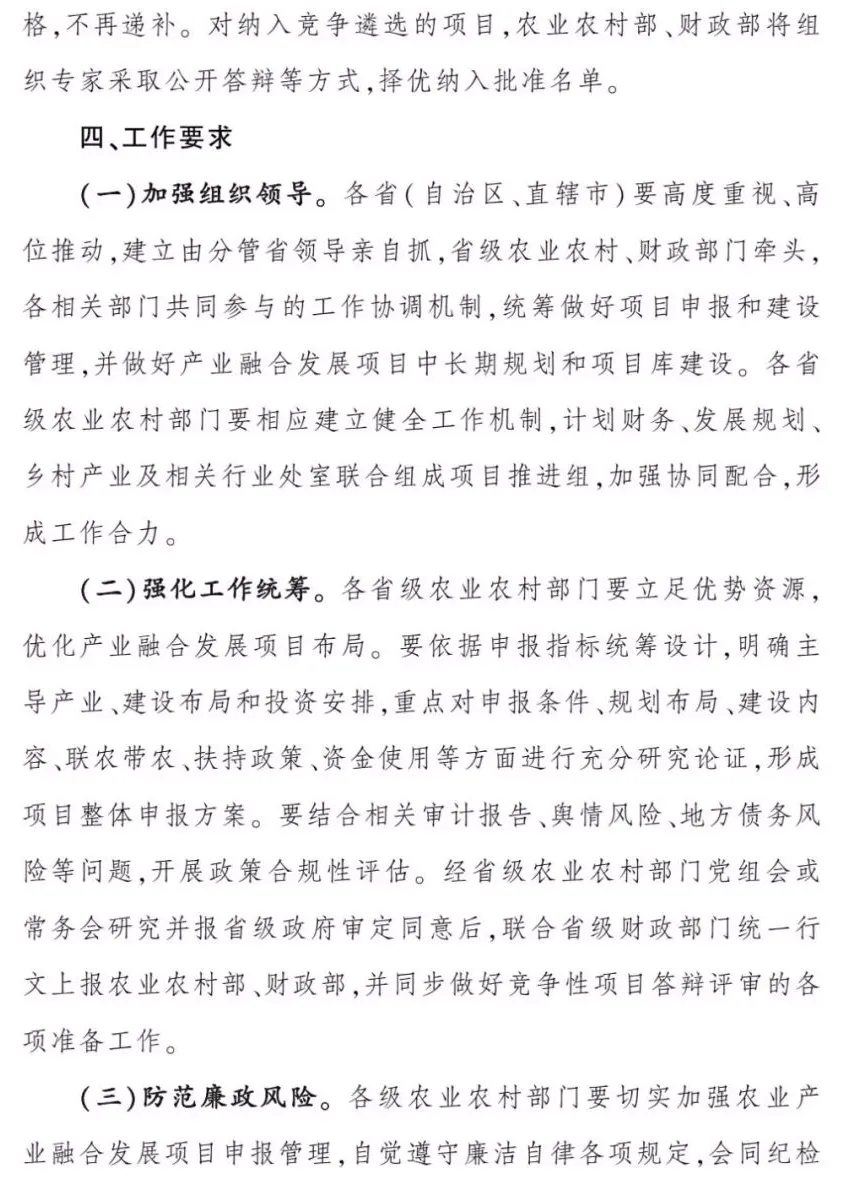 貫徹落實(shí)黨中央、國(guó)務(wù)院關(guān)于農(nóng)村產(chǎn)業(yè)融合發(fā)展的決策部署,為更好發(fā)揮中央財(cái)政資金使用效益,引導(dǎo)和撬動(dòng)更多資源要素向鄉(xiāng)村匯聚,促進(jìn)鄉(xiāng)村產(chǎn)業(yè)全鏈條升級(jí),提升鄉(xiāng)村產(chǎn)業(yè)發(fā)展水平,農(nóng)業(yè)農(nóng)村部、財(cái)政部2024年繼續(xù)統(tǒng)籌推進(jìn)農(nóng)業(yè)產(chǎn)業(yè)融合發(fā)展工作。