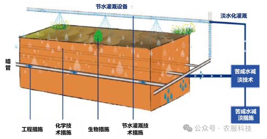 由于鹽堿地治理周期長(zhǎng)、難度大、易反復(fù),在實(shí)際治理中,三種方法經(jīng)常組合使用。中國(guó)各鹽堿區(qū)已探索出一些關(guān)鍵治理技術(shù),如東部濱海鹽堿地暗管排鹽工程技術(shù)模式、東北蘇打鹽堿地通過(guò)添加石膏或有機(jī)酸類等酸性土壤改良劑來(lái)改善土壤理化性質(zhì)、西北干旱綠洲區(qū)鹽堿地采取膜下滴灌技術(shù)等。