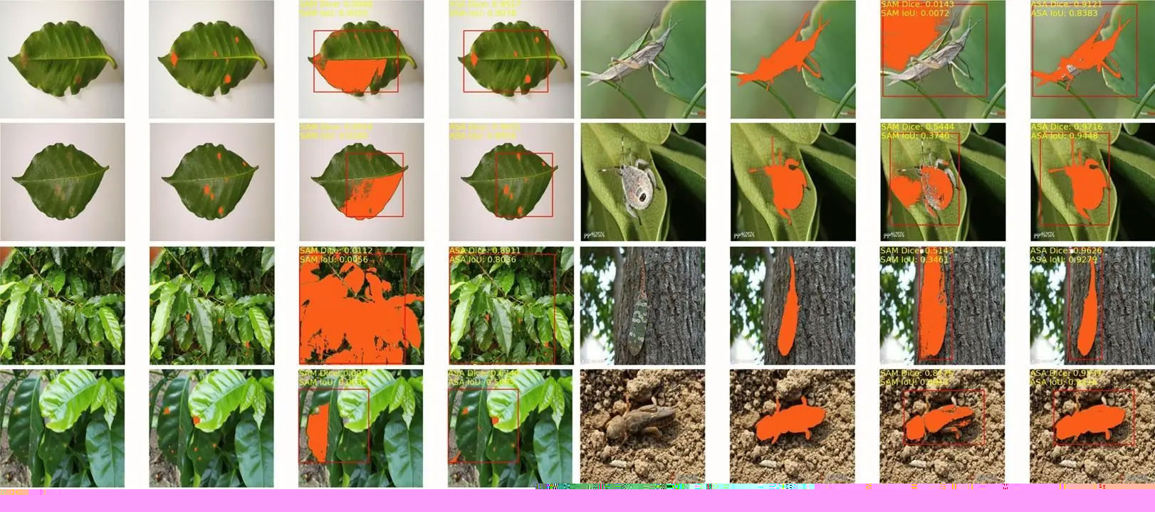 圖4 SAM在使用適配器后的病蟲害圖像分割實例