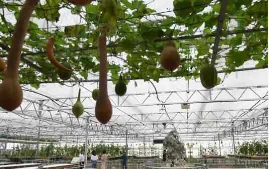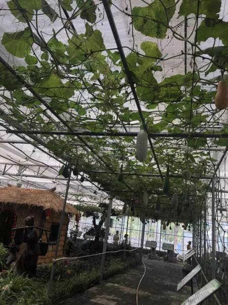在同鑫現(xiàn)代農(nóng)業(yè)大觀園內(nèi),我們可以看到看到,平常菜市場常見的油麥菜、生菜、西蘭花等蔬菜就像人們住高樓一樣,住在了一層層階梯式、盆架式布置栽培的管道上。