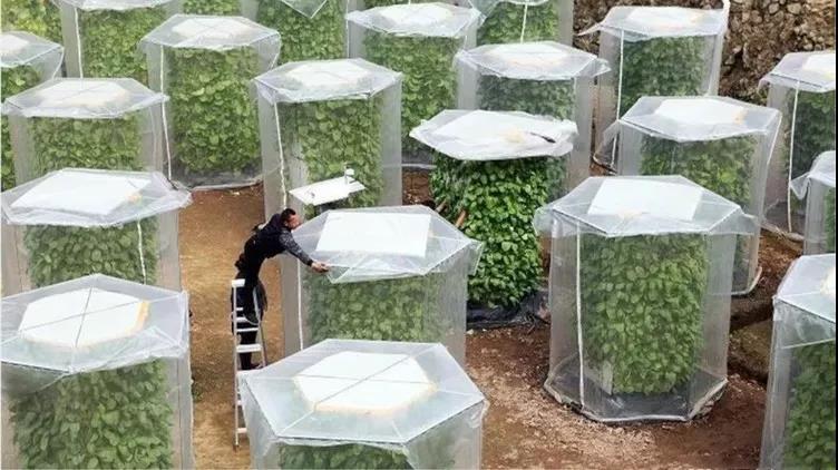 原來,「無土種菜」的秘訣就在于這種3米高的立柱,只需要3個人半個小時就能搭好。每一個立柱有6個面,能種390棵蔬菜,是相同面積土地上種菜數量的6倍。
