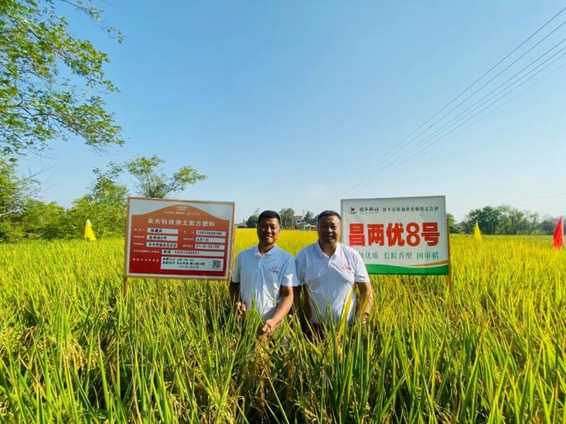 該示范田種植品種為優質中稻昌兩優8號,示范田施用禾大科技測土配方肥,對照組施用傳統復合肥。經過專家嚴格測產,最終測產結果顯示:采用禾大科技測土配方模式的田塊,每畝減肥10公斤,畝平增產8.1%,試驗效果達到了減肥增效的目標。
