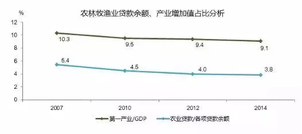 由于農業比較效益低下,自然風險、市場風險比較高,使得傳統金融機構服務于農業領域的動力不足。我國第一產業增加值約占GDP的9%,但農業貸款余額僅占各項貸款余額的4%左右。