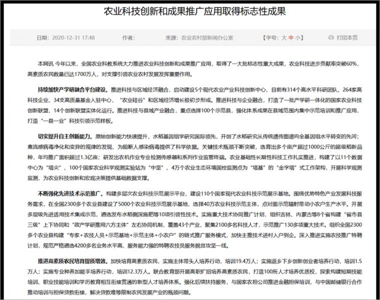 年末農業農村部對農業科技創新成果進行了總結,如下圖所示。
