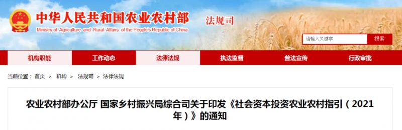 社會資本投資農(nóng)業(yè)農(nóng)村指引(2021年)
