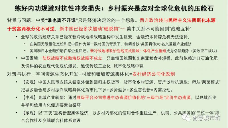 本文為溫鐵軍團(tuán)隊(duì)2021年5月的最新PPT,文中提出,以“三變”重構(gòu)新型集體經(jīng)濟(jì),以鄉(xiāng)村內(nèi)部化的信用合作重組生產(chǎn)、供銷、公共服務(wù)的“三位一體”綜合合作社及鄉(xiāng)鎮(zhèn)聯(lián)合社體系建設(shè)。