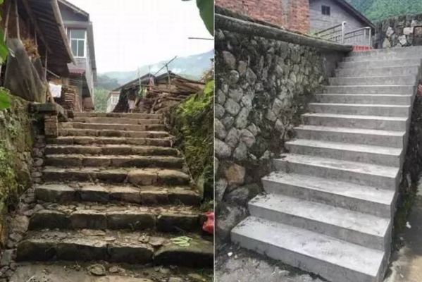 △梅列區**村將原有石砌臺階水泥抹面