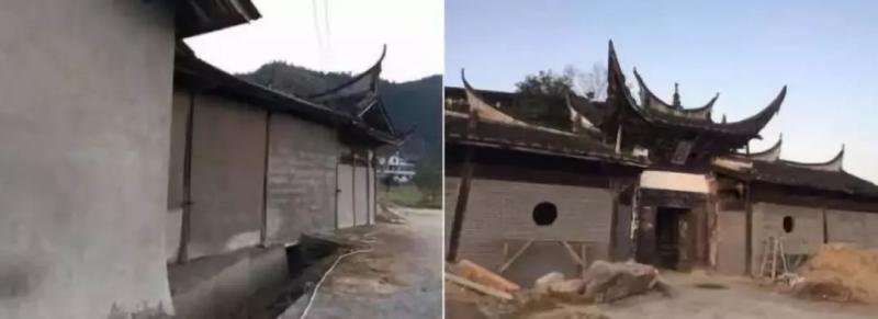 △延平區**村傳統宗祠水泥簡單抹面、貼瓷磚,破壞傳統風貌