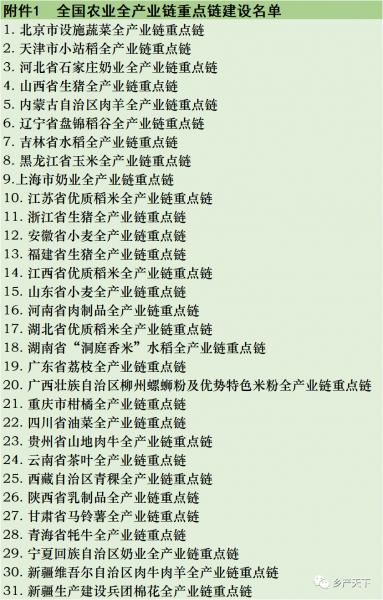 附件:1.全國農(nóng)業(yè)全產(chǎn)業(yè)鏈重點鏈建設(shè)名單