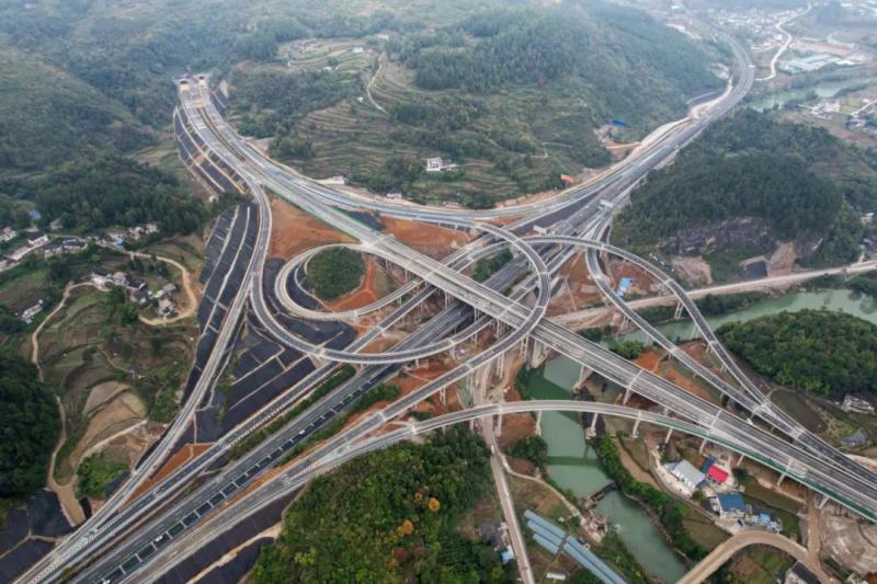 ▲11月2日拍攝的貴州湄石高速湄潭縣黃家壩樞紐互通(無人機照片)。新華社發(羅星漢攝)