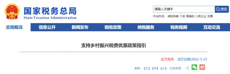 5月21日,國家稅務總局發布《支持鄉村振興稅費優惠政策指引》,從支持農村基礎設施建設、推動鄉村特色產業發展、促進區域協調發展等六個方面,梳理形成了109項針對鄉村振興的稅費優惠政策。