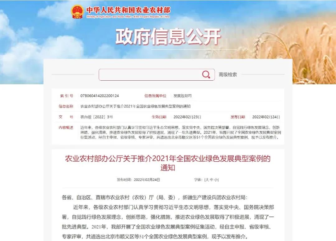 2021年全國農業綠色發展典型案例名單