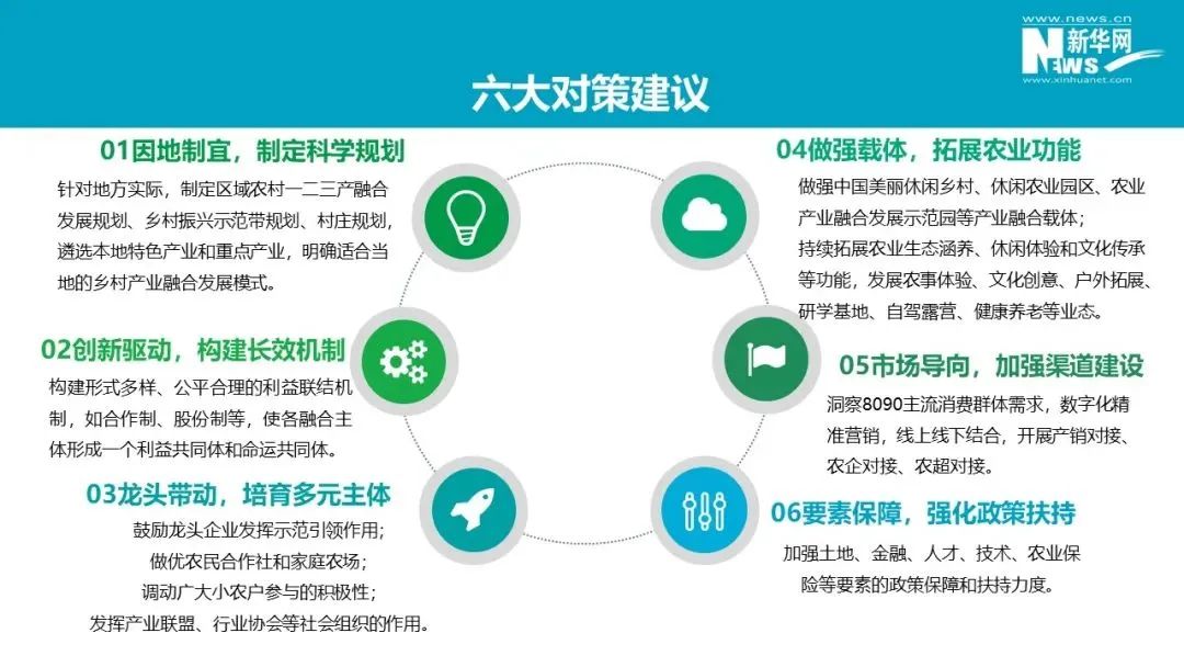 我們在報告里提出了六大對策建議:第一,因地制宜,制定科學規(guī)劃;第二,創(chuàng)新驅動,構建長效機制;第三,龍頭帶動,培育多元主體;第四,做強載體,拓展農(nóng)業(yè)功能;第五,市場導向,加強渠道建設;第六,要素保障,強化政策扶持。