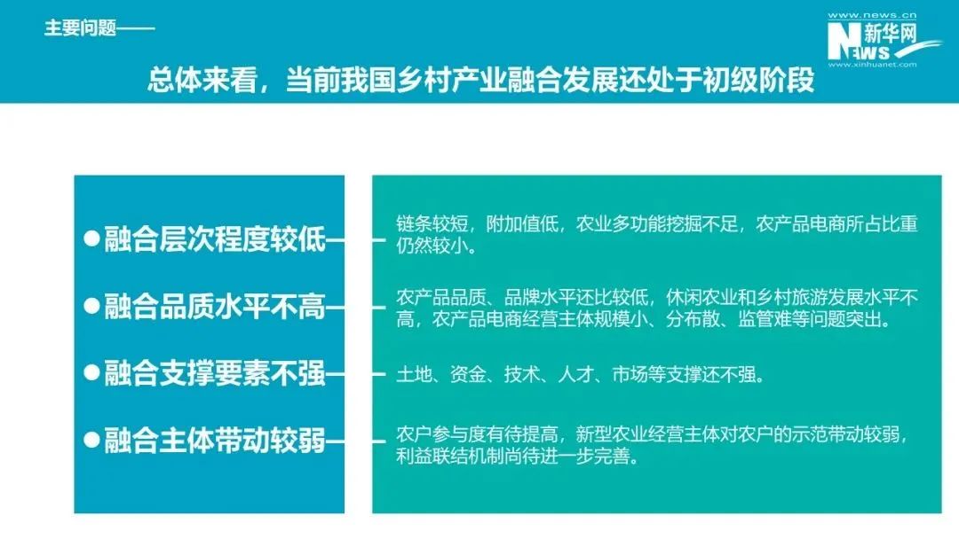 從存在的主要問題來看:我們還處于鄉(xiāng)村產(chǎn)業(yè)融合發(fā)展的初級階段,面臨四個待完善的問題;鄉(xiāng)村產(chǎn)業(yè)融合的層次程度較低、融合的品質水平不高、融合的支撐要素不強和融合的主體帶動較弱。