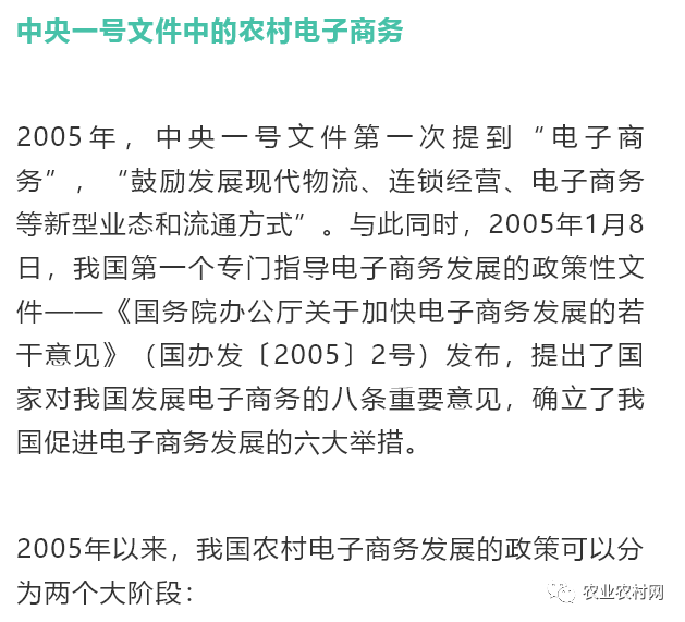 2005年以后,我國(guó)電子商務(wù)發(fā)展迅猛,2013年電子商務(wù)交易總額突破10萬(wàn)億元,2014年達(dá)到13.4萬(wàn)億,成為經(jīng)濟(jì)發(fā)展的新亮點(diǎn)和新動(dòng)能。國(guó)家加大了電子商務(wù)發(fā)展指導(dǎo)工作的力度,2015年5月發(fā)布了《國(guó)務(wù)院關(guān)于大力發(fā)展電子商務(wù)加快培育經(jīng)濟(jì)新動(dòng)力的意見(jiàn)》(國(guó)發(fā)〔2015〕24號(hào)),提出積極發(fā)展農(nóng)村電子商務(wù),開(kāi)展電子商務(wù)進(jìn)農(nóng)村綜合示范,支持快遞服務(wù)網(wǎng)絡(luò)向農(nóng)村地區(qū)延伸;2015年12月商務(wù)部、中央網(wǎng)信辦、發(fā)展改革委三部門聯(lián)合發(fā)布《電子商務(wù)“十三五”發(fā)展規(guī)劃》,提出“電子商務(wù)促進(jìn)農(nóng)業(yè)轉(zhuǎn)型升級(jí)”“積極開(kāi)展電子商務(wù)精準(zhǔn)扶貧”,開(kāi)展電子商務(wù)促進(jìn)縣域經(jīng)濟(jì)行動(dòng)、“電商扶貧”專項(xiàng)行動(dòng)。