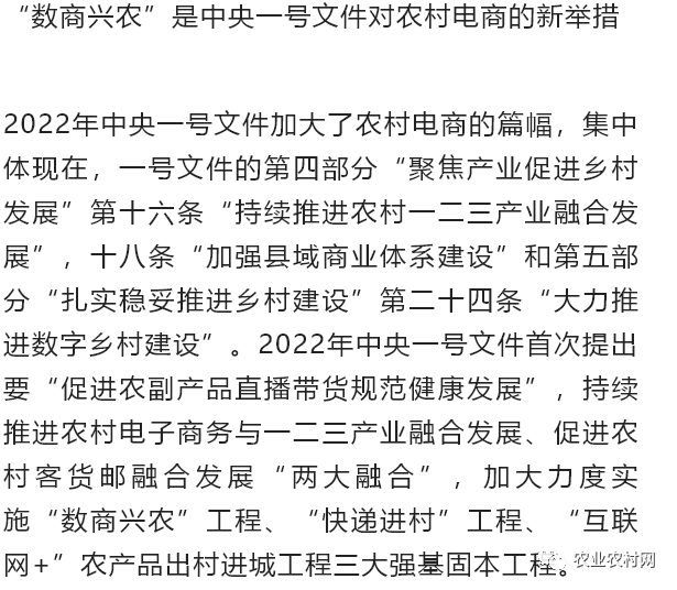 實(shí)施“數(shù)商興農(nóng)”工程,是2022年中央一號(hào)文件中農(nóng)村電商的最大亮點(diǎn)。