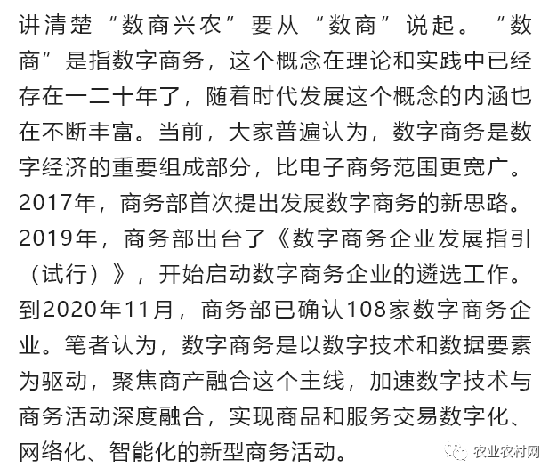 2021年1月,商務(wù)部下發(fā)了《關(guān)于加快數(shù)字商務(wù)建設(shè) 服務(wù)構(gòu)建新發(fā)展格局的通知》,專門部署了數(shù)字商務(wù)建設(shè)工作。2021年6月,《商務(wù)部落實(shí)〈中共中央國(guó)務(wù)院關(guān)于實(shí)現(xiàn)鞏固拓展脫貧攻堅(jiān)成果同鄉(xiāng)村振興有效銜接的意見(jiàn)〉實(shí)施方案》再次提出,要在推動(dòng)流通提升方面實(shí)施“數(shù)商興農(nóng)”。