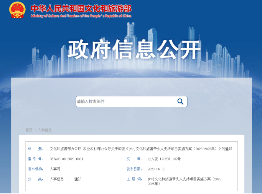 【發(fā)文機關(guān)】文化和旅游部【發(fā)布時間】2023.07