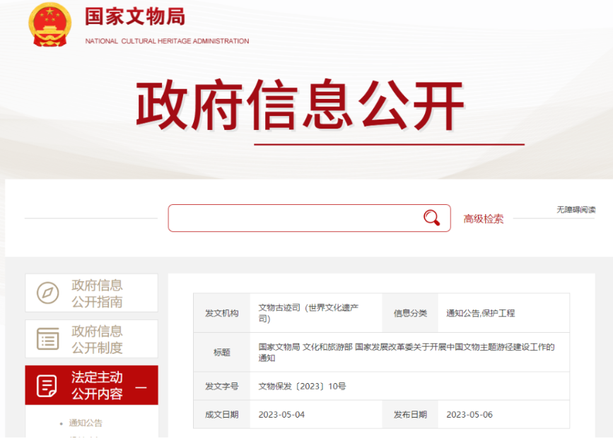 【發(fā)文機關(guān)】國家文物局、文化和旅游部、國家發(fā)展改革委【發(fā)文字號】文物保發(fā)〔2023〕10號【發(fā)布時間】2023.05.04
