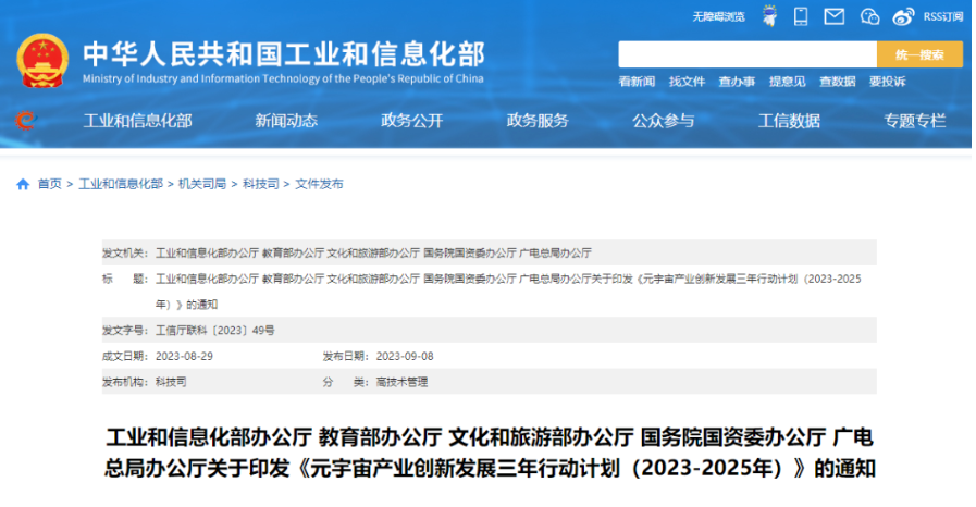 《元宇宙產(chǎn)業(yè)創(chuàng)新發(fā)展三年行動計劃(2023—2025年)》