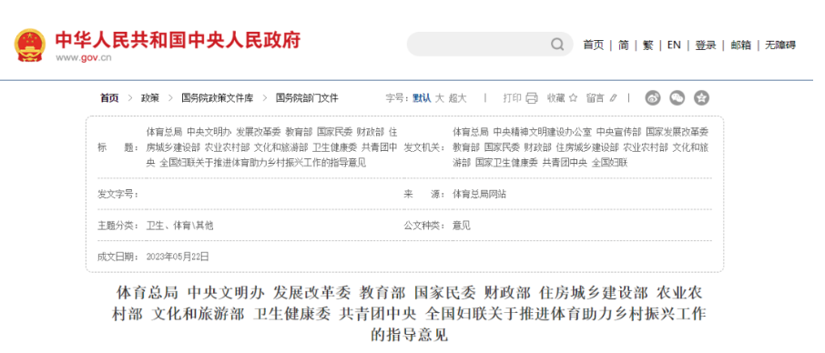 《關(guān)于推進體育助力鄉(xiāng)村振興工作的指導(dǎo)意見》