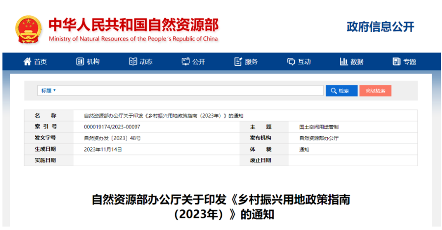 【發(fā)文機關(guān)】自然資源部辦公廳【發(fā)文字號】自然資辦發(fā)〔2023〕48號【發(fā)布時間】2023.11.14