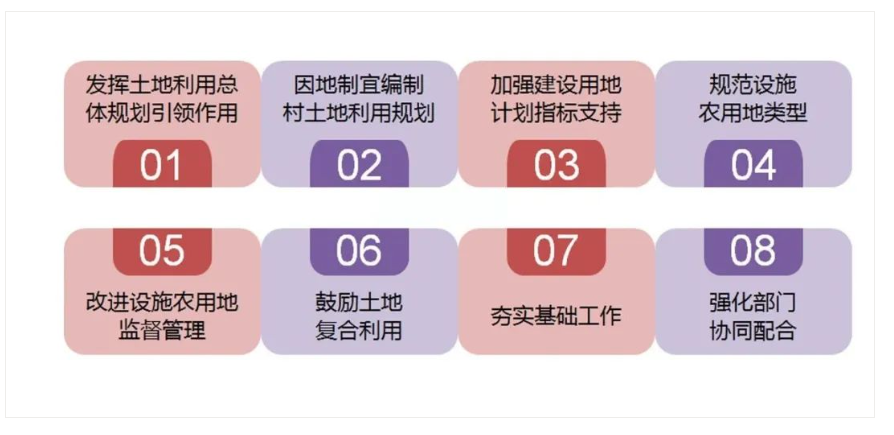 2017年12月,國土資源部、國家發(fā)展改革委聯(lián)合印發(fā)的《關(guān)于深入推進農(nóng)業(yè)供給側(cè)結(jié)構(gòu)性改革做好農(nóng)村產(chǎn)業(yè)融合發(fā)展用地保障工作的通知》從八個方面明確了保障農(nóng)村產(chǎn)業(yè)融合發(fā)展用地的政策。