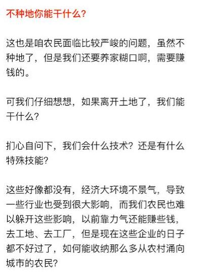 不懂得新技術(shù)你就不能增產(chǎn)增收,不擴大規(guī)模就不能提高收益,不加大投入就難以高產(chǎn)出,而這一切都在提高種地的門檻,現(xiàn)在已經(jīng)不是一個拖拉機加上老兩口就能種地的年代了。