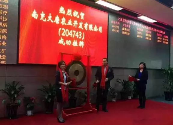 2015年年初,大唐農業開始向資本市場邁進。2015年4月3日,大唐農業成功在上海股權托管交易中心掛牌。2015年5月15日,大唐農業釋放20%的股權,成為南充首家進入資本市場成功融資的農業公司。