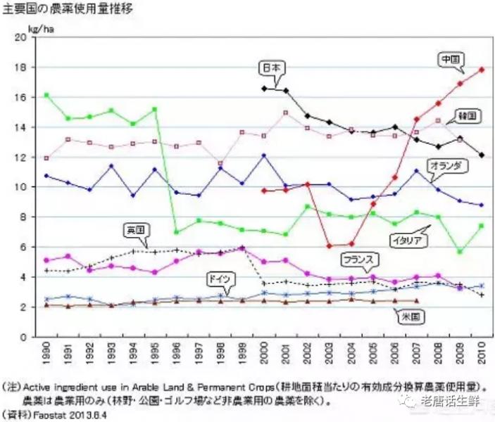 雖然中國總量高,但是要論起單位面積內的農藥使用量,日本其實更高。