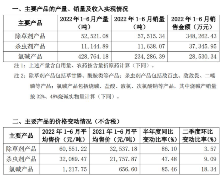 同樣受益的還有江山股份,2022年上半年江山股份除草劑收益34.8億元。