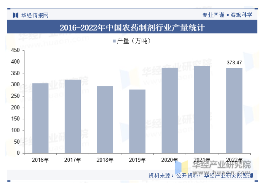 中國農藥制劑產量近年來呈現出波動增長的趨勢。2022年我國農藥制劑產量為373.47萬噸,同比下降2.1%。未來,隨著環保意識的提高和農業現代化的推進,中國農藥制劑行業將朝著環保化、高效化、安全化的方向發展。