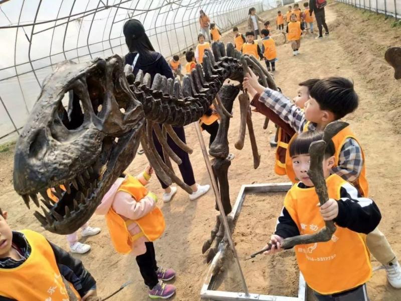 另外,在活動設計上,我們農莊還做了一個瘋狂原始人配套的恐龍挖掘活動。其中有一項是恐龍挖掘,這個是我們通過一個恐龍的很逼真的一個恐龍骨架,然后把它埋到沙坑里,小朋友扮演成原始人,去沙坑里挖掘,再拼成一個完整的恐龍,從而使他們學習恐龍的結構等知識。