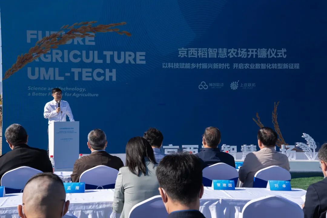 活動現場彩旗獵獵、熱鬧非凡。由博創聯動副總裁主持,農業農村部農業機械化總站副站長徐振興、北京市海淀區農業農村局副局長向敬陽以及北京市海淀區上莊鎮人民政府黨委書記周波先后致辭,北京博創聯動創始人 CEO在現場做了智慧農業主題的發言。