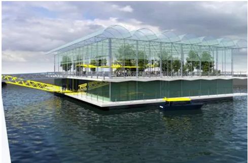 荷蘭這座“漂浮農場”共有3層,用錨固定在海底,在玻璃房里,在紫外線的照射下,農作物垂直種植在成排的架子上。