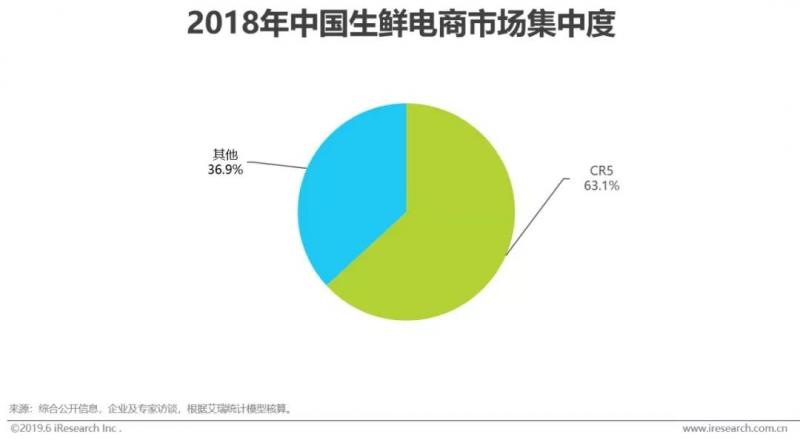 2018年中國生鮮電商CR5占比63.1%,集中度較高,頭部效應明顯。