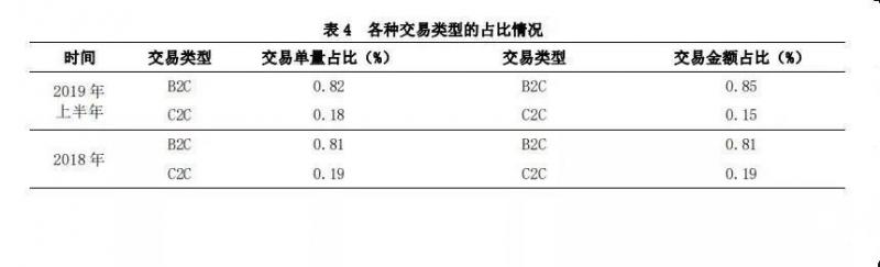 表4數據表明,近年來B2C生鮮電商的占比越來越高。2019年上半年B2C商業模式的交易單量占比和交易金額占比分別從2018年的81%、81%上升到82%、85%。B2C生鮮電商份額的增加對規范生鮮電商發展具有重要意義,將推動生鮮電商快速發展。