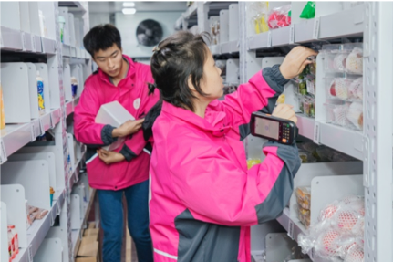 中游的倉儲以分布式的前置倉模式為主,倉庫冷鏈控制器由感應(yīng)器實時自動控溫,節(jié)能又穩(wěn)定。貨架上的物品也與訂單管理系統(tǒng)連接,仿佛是一座自我運行的未來倉庫。