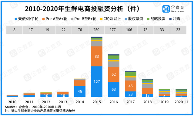 5、今年生鮮電商投融資事件達33起,與去年持平,多筆大額融資引人注目