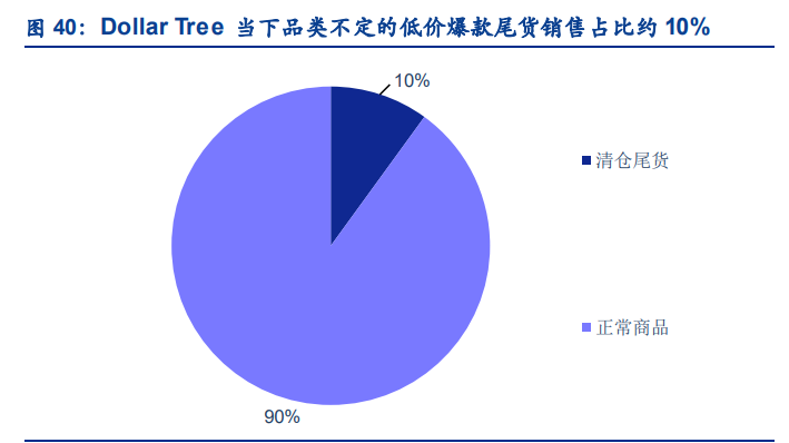 美國折扣雜貨店已有多年發展,近年大獲成功,其部分成功因素在于①選擇近場模式并在 SKU 品類上避開避開電商強勢品種,在引流品類上銷售具備優勢。②相較傳統超市差異化的 供應鏈管理帶來的優勢。相較于極致供應鏈管理的沃爾瑪,折扣連鎖店不以齊全的 SKU 比 拼價格,而尋找尾貨及來自亞洲的低價進口商品,在品牌商品上以少型號高采購量提升議價 能力,從而形成獨特的供應鏈優勢。同時看到,隨著銷售規模的擴大,尾貨銷售會逐漸下降, 自有供應鏈體系構建會更加成熟,以 Dollar Tree 為例,尾貨占比從模式創立之初的 40%-50% 逐漸下降至 10%,而公司采購自中國、墨西哥等的進口商品占比則達到了 40%-50%,也與 更多的美國三四線品牌制造商建立了合作。在這樣的供應鏈體系下,折扣雜貨店始終維持 30% 以上的高毛利水平。