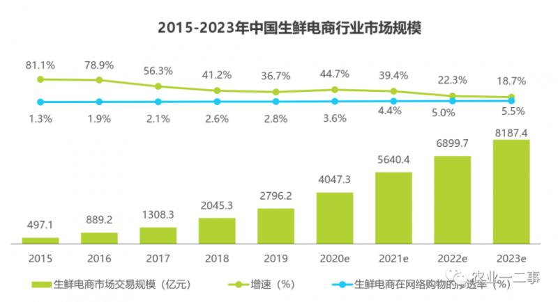 圖3-生鮮市場(chǎng)規(guī)模圖(數(shù)據(jù)來自艾瑞咨詢)