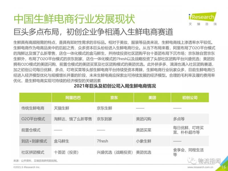 生鮮電商作為電商品類中的后起之秀,眾多資本巨頭紛紛進入生鮮電商行業(yè)。當下前置倉、店倉一體化、O2O平臺、社區(qū)團購等多種新型生鮮電商模式共存,不同商業(yè)模式的生鮮電商滿足不同層級消費者的消費需求,預(yù)計未來一段時間,生鮮電商市場仍舊不會出現(xiàn)“一家獨大”的局面,多種商業(yè)模式并存的格局仍將繼續(xù)。