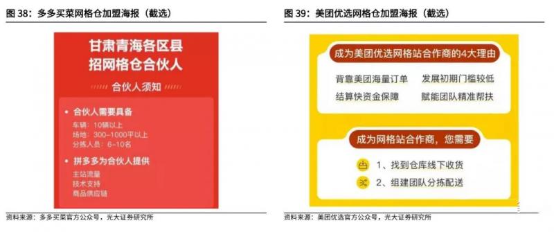 b、商品分揀與履約的責任則由平臺方、網格倉加盟商、團長、消費者各承擔一部分,降低了平臺方履約壓力(自營為主的前置倉承擔主要運輸壓力);