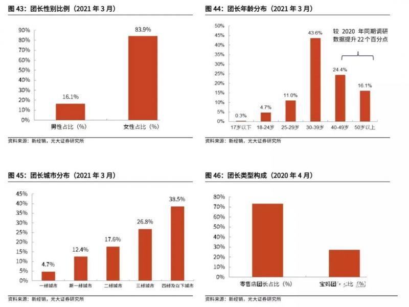 城市分布方面,下沉市場比例大,三線及以下城市團長合計占比 65.3%。