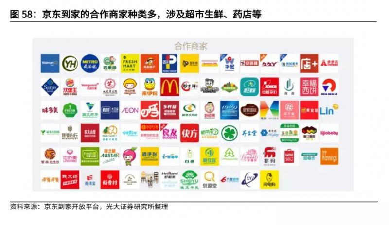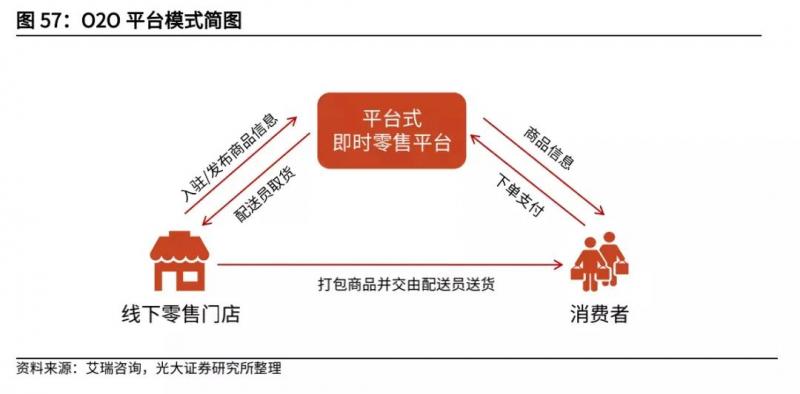 O2O平臺模式屬于輕資產運營模式,通過互聯網平臺(如京東到家)將線下商超的商品和消費者鏈接起來,配送為即時配送,時長約為1小時。由于平臺模式可以對接多家線下超市和門店,包括生鮮水果店、鮮花綠植店、藥店等,商品種類往往更加齊全,滿足消費者多品類的消費需求。